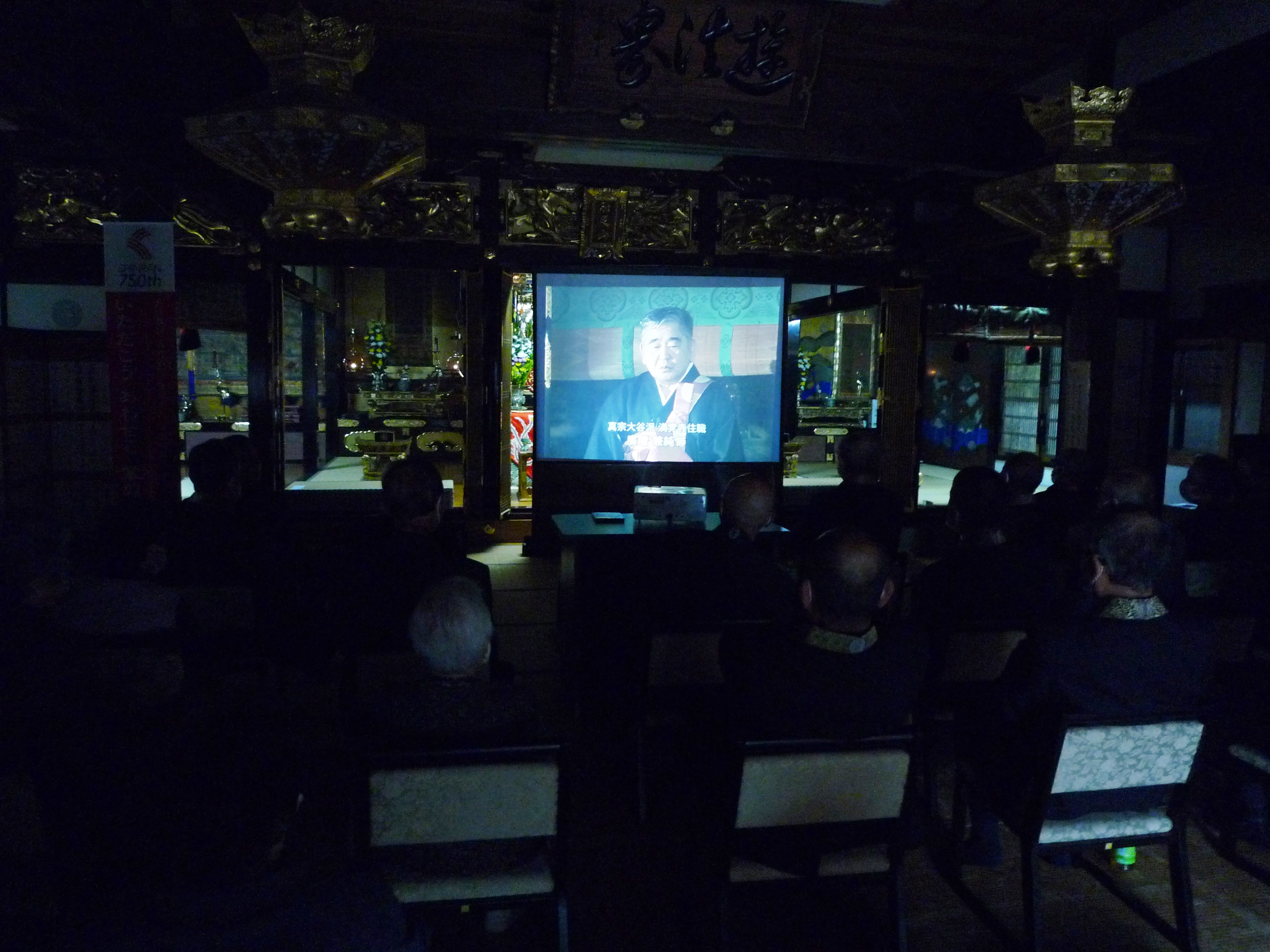 ▼お待ち受け事業である、手作り屏風に短冊(ご門徒様各戸で正信偈1行記述)を張り付ける」事業が今年の報恩講で公表(お披露目)されました。)(他所門徒様10戸含む)
