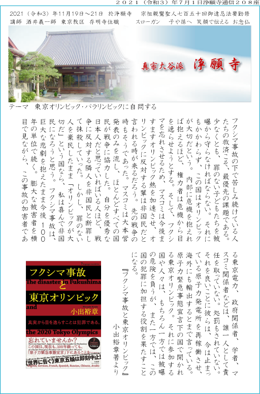 ■表紙の文章は2019年12月の発行であり、コロナ禍になる前に書かれたものです。つまりこの文章に加えてコロナ禍の真っ只中にも関わらず、日本政府は「安全安心」などと宣いながら東京オリンピック・パラリンピックを強行開催するのです。なんとも恐しいことであると思います。