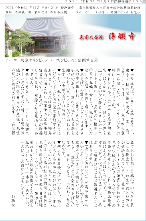 東京オリンピック・パラリンピックに自問する〓 住職記