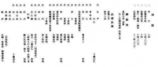 九時 法類法中様・親類法中様・各お宿集会(装束)