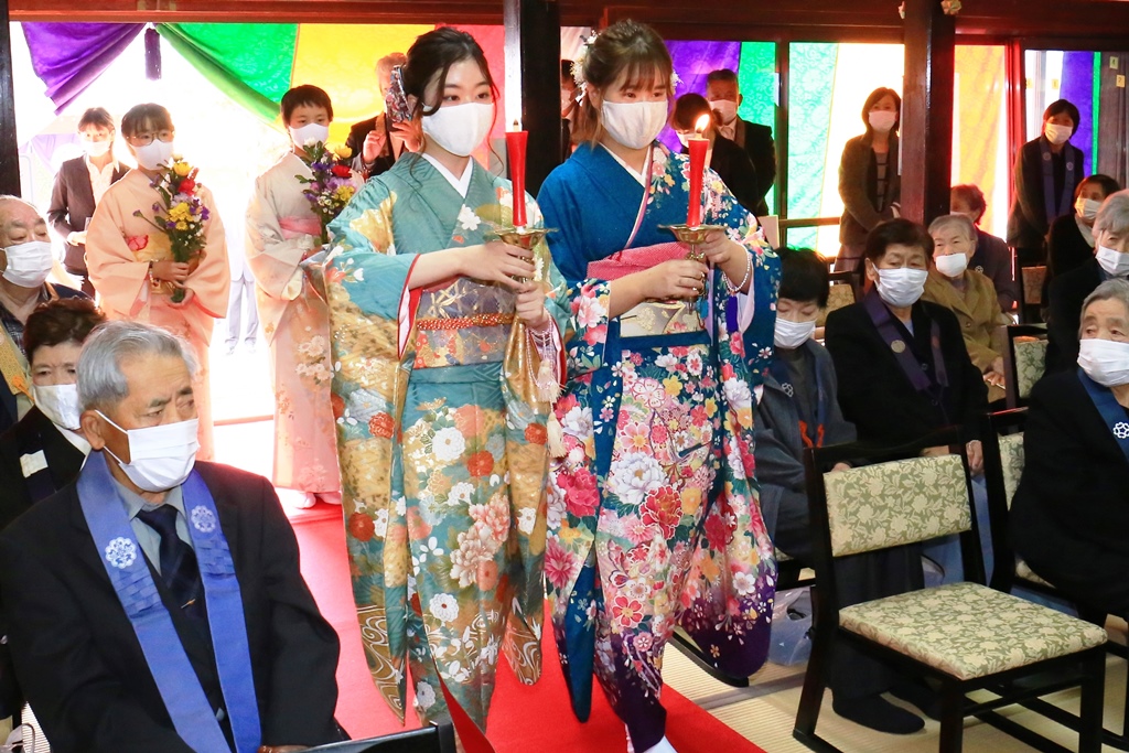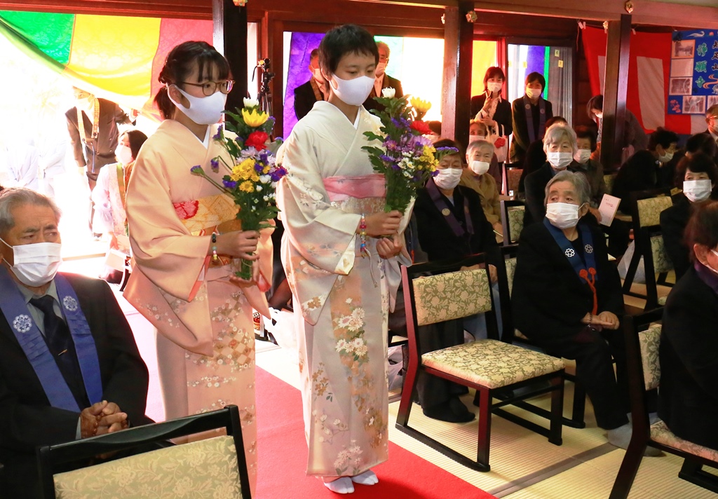 ●昭和四十一年親鸞聖人七百回忌法要に、着物姿で献花させてもらいました。本堂改築落慶法要の時、主人も子供も庭儀参堂列のご縁をいただきました。浄願寺の前を通るたびに掲示板を読みます。日々に感謝しながら。