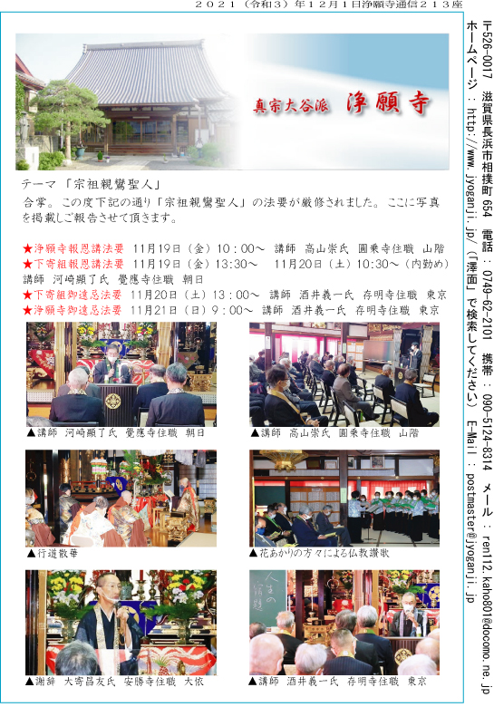●仏縁の浅い私にとって月参りと浄願寺通信は心の安らぎを感じます。