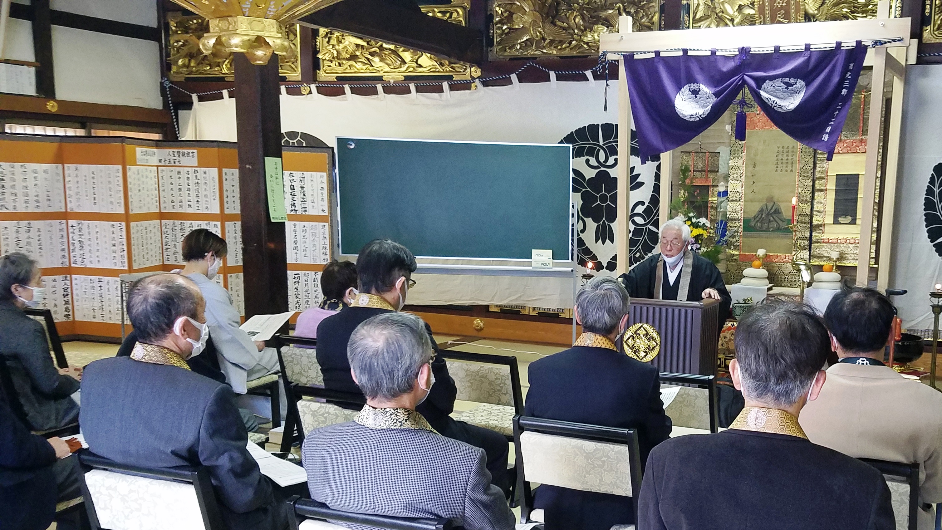 ▼講師の玉樹惇様(八木浜 西照寺前住職)から、あらためて同じ下寄講ということからも、昨年の下寄講御遠忌と浄願寺御遠忌の円成に対しお祝いの言葉を頂きました。