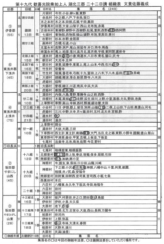 二十二日講の組織は湖北一市三郡を六つの地区に分けて構成されています。