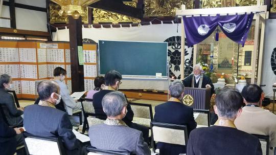 ↑講師 玉樹惇氏(八木浜 西照寺前住職)