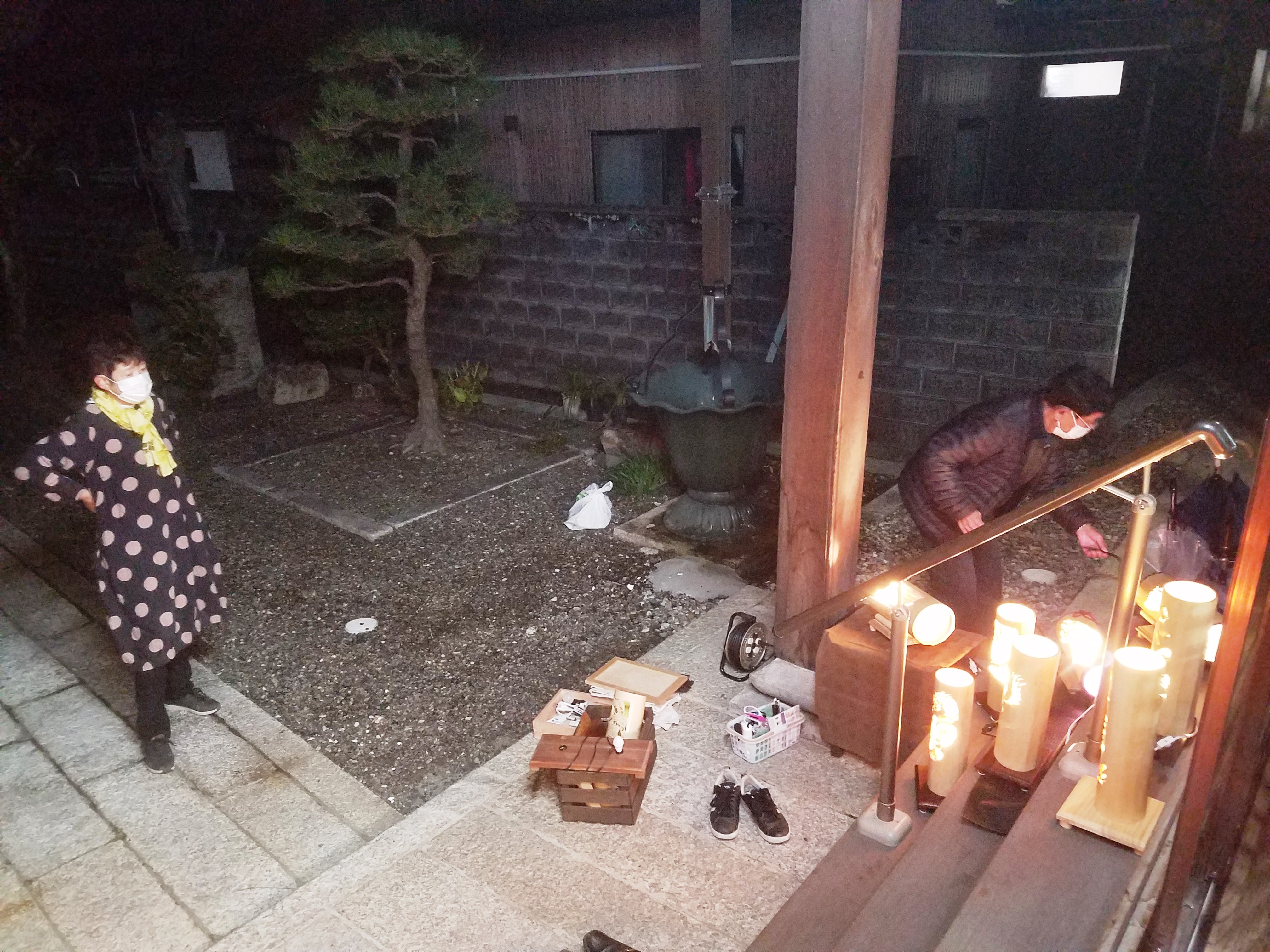 ↑11月17日(木)夜 竹灯籠設置(西村厚子さん 野村良雄さん)