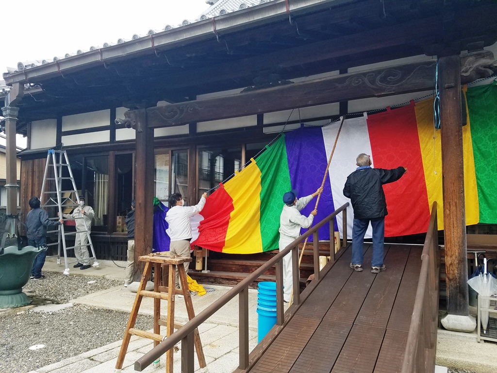 ↑11月18日(金)朝 玄関 向拝 幕張り