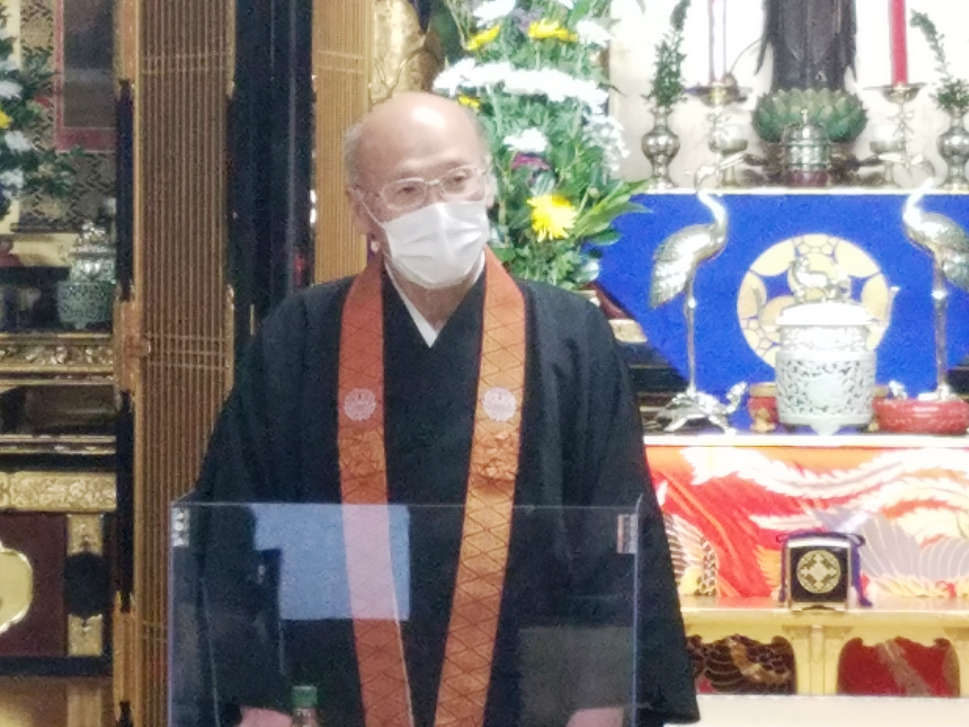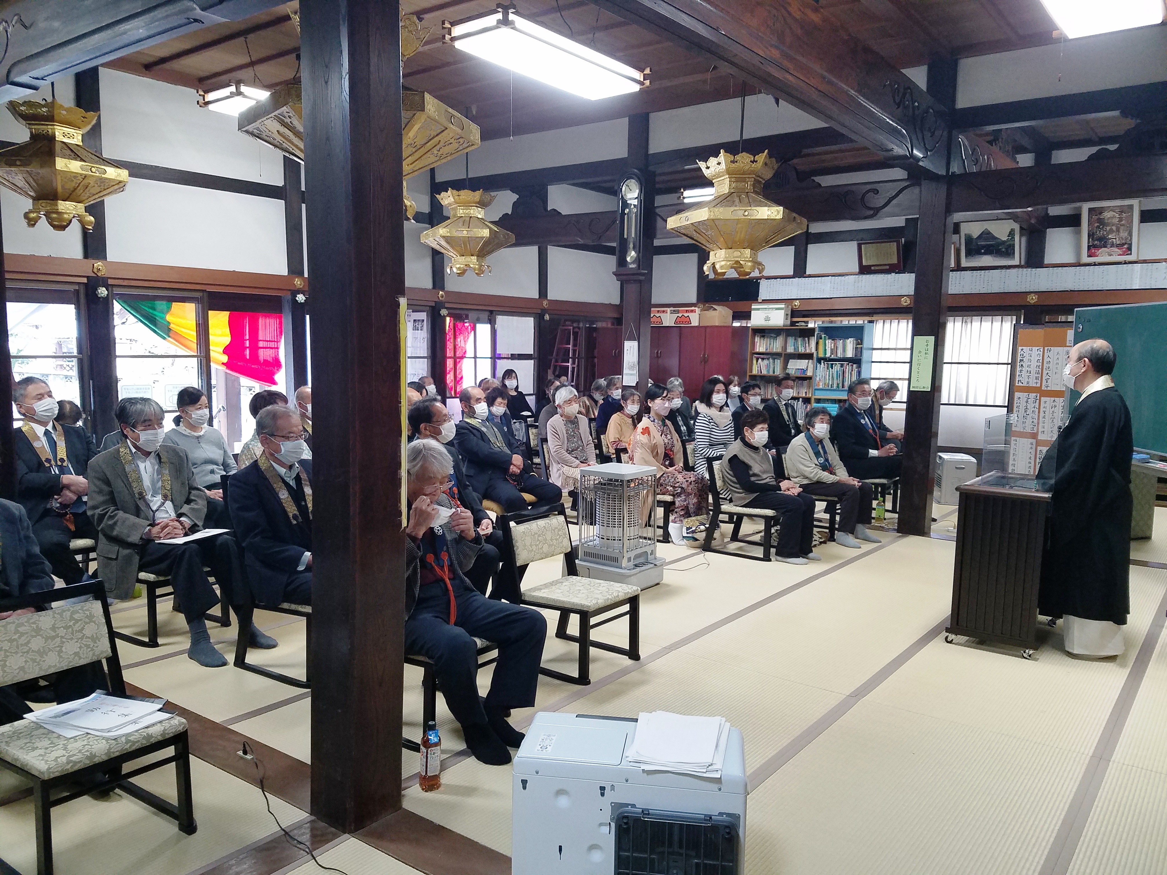 ↑お礼の言葉 藤田輿史雄氏(当寺 門徒総代長)