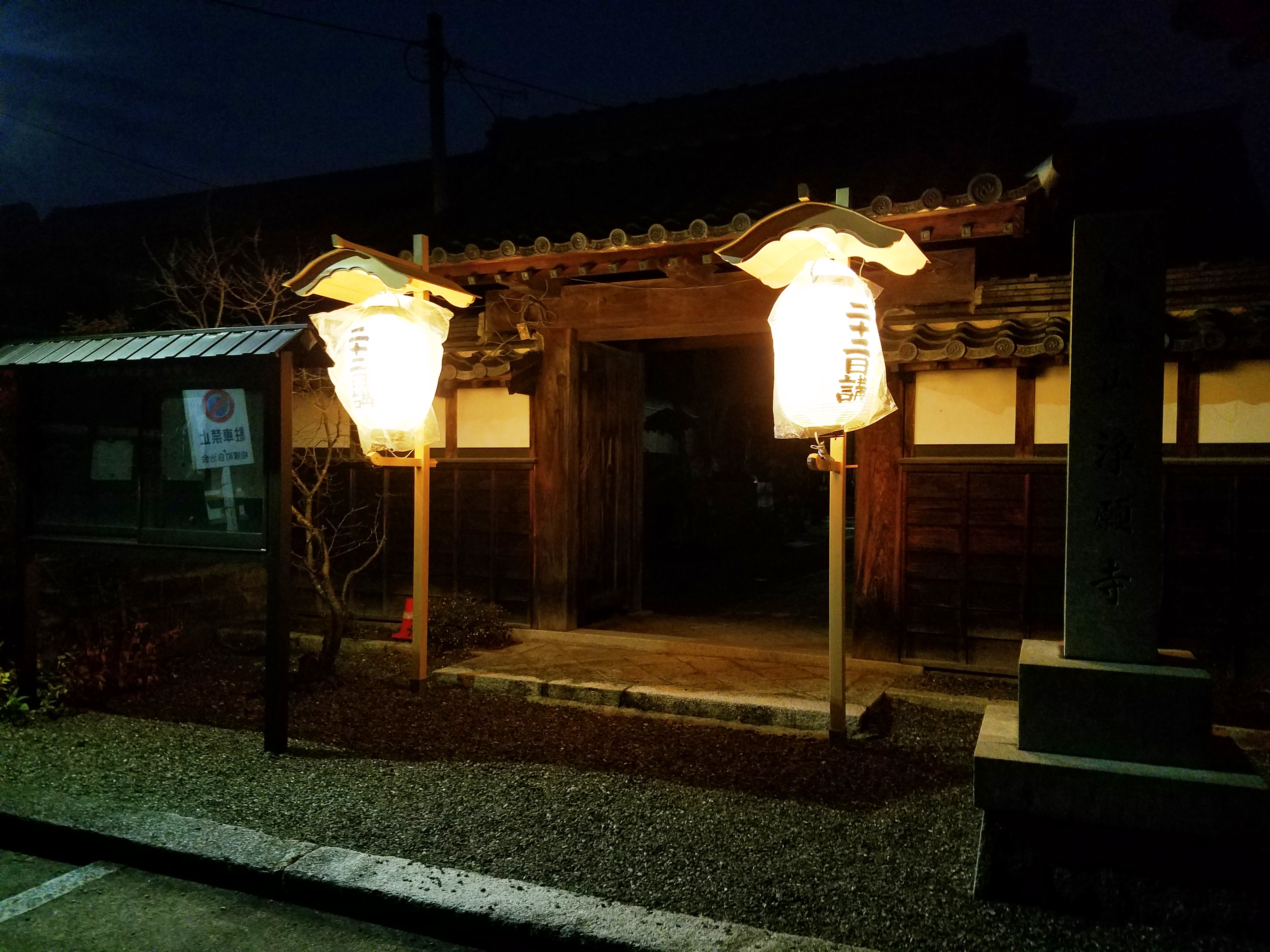 ↑お宿の浄願寺に提灯設置(夜)