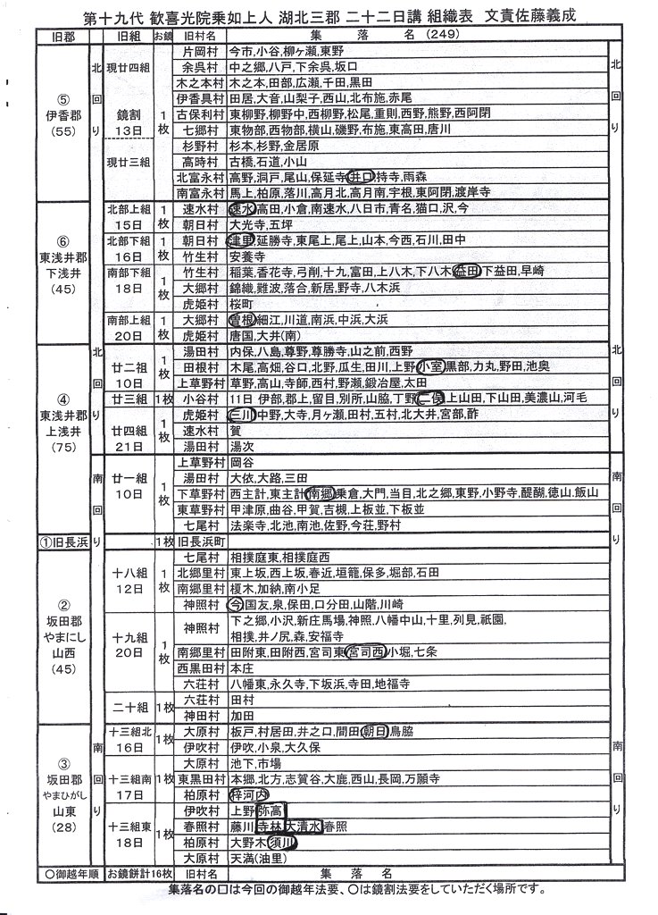 二十二日講の組織は湖北一市三郡を六つの地区に分けて構成されています。
