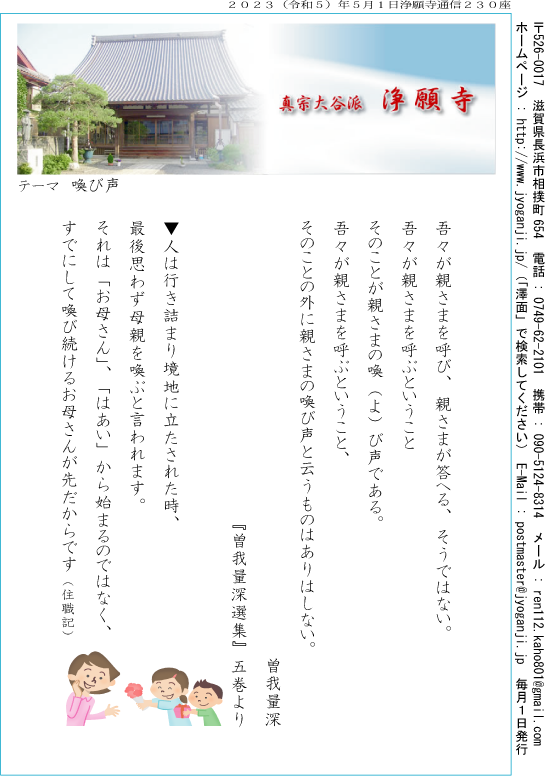 すでにして喚び続けるお母さんが先だからです(住職記)