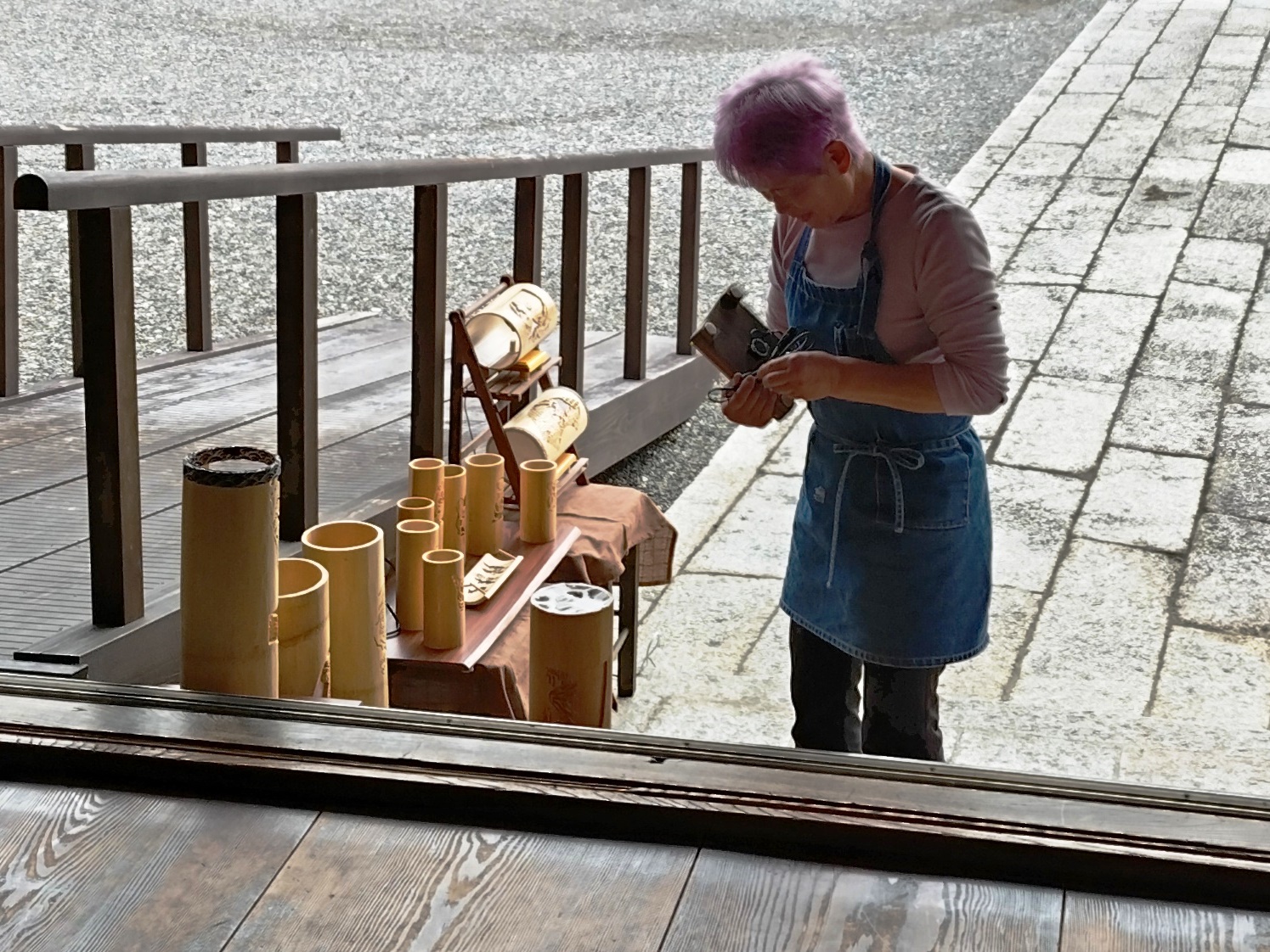 ↑11月15日(金)昼 竹灯籠設置(西村厚子さん)