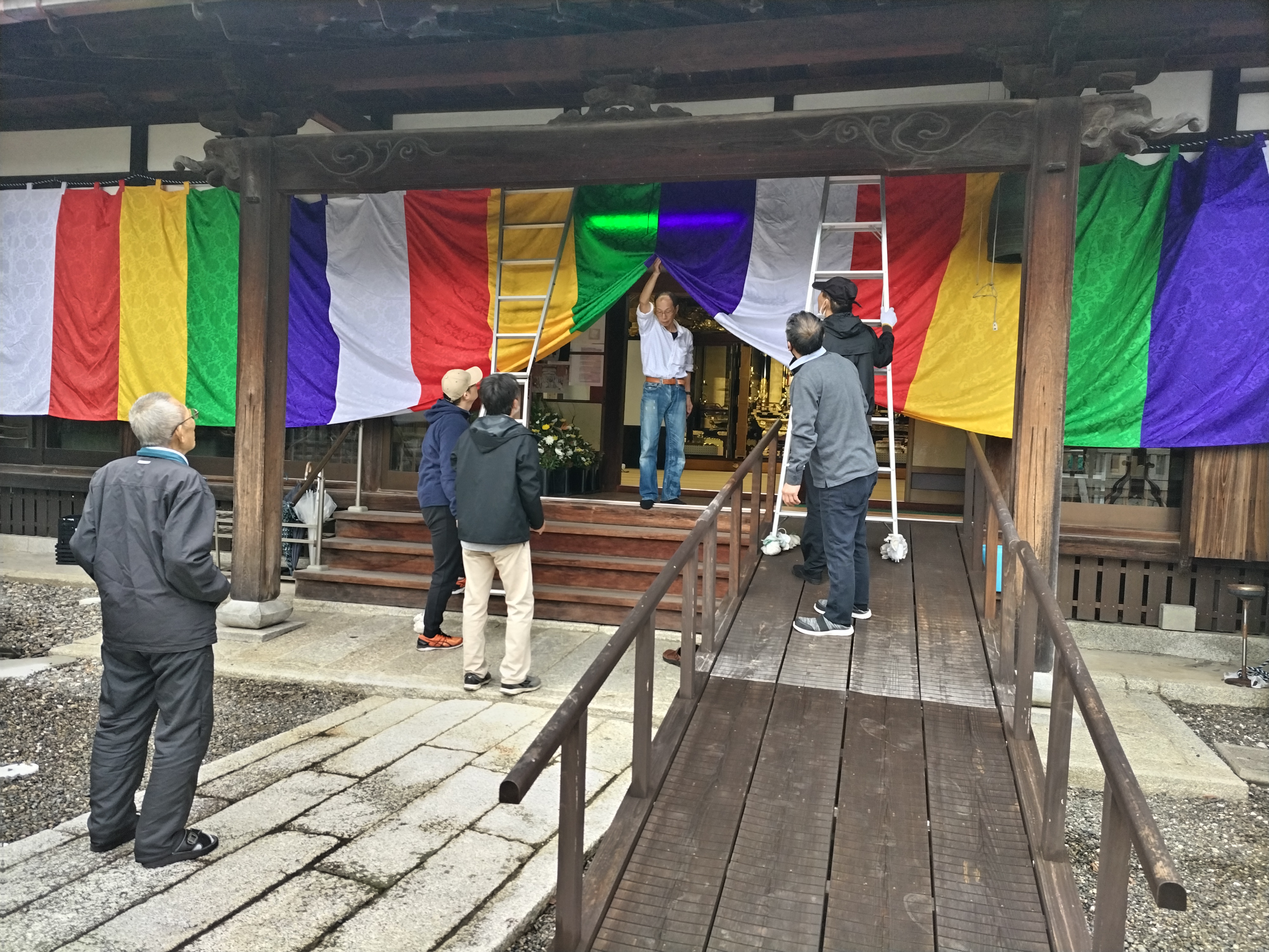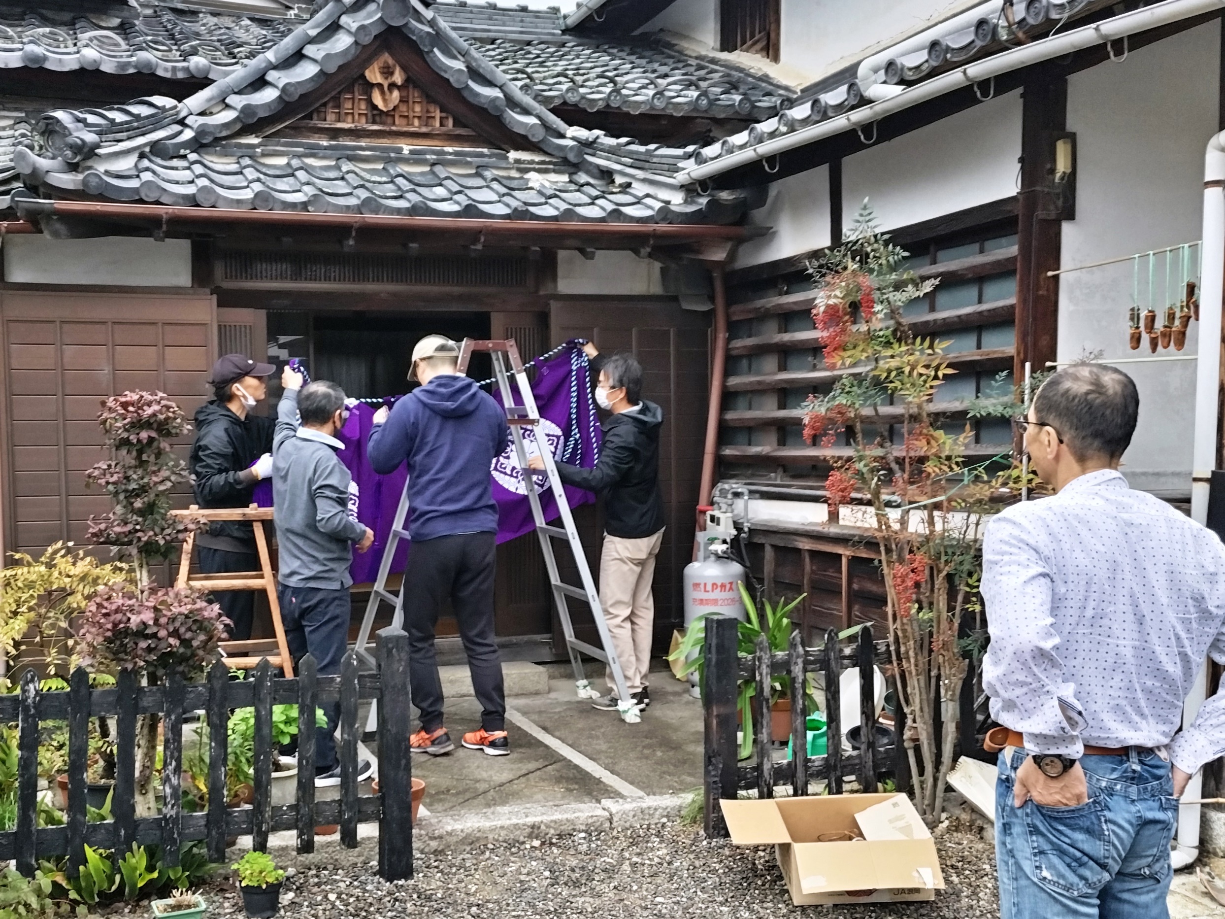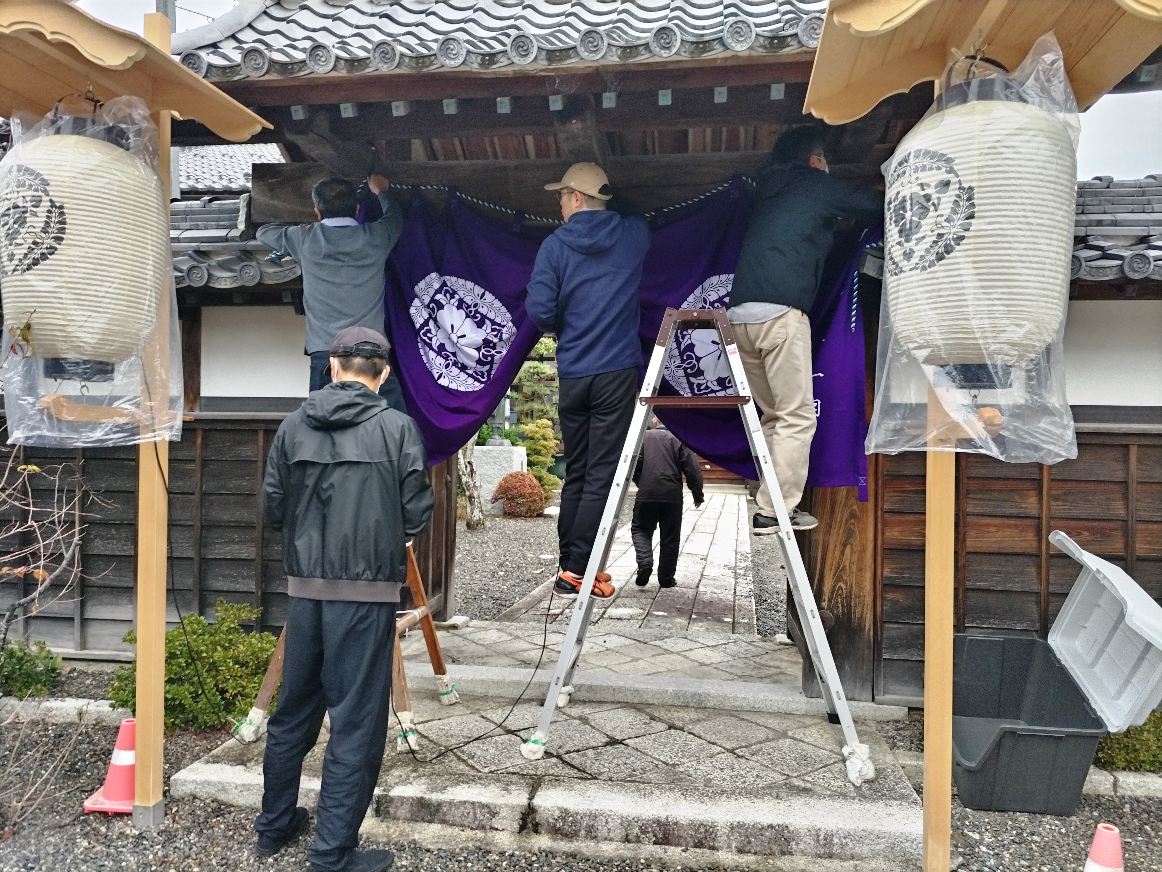 ↑11月15日(金)朝 山門 提灯設置 幕張り