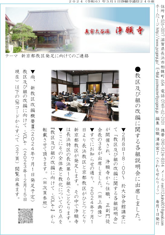 ▼そしてこのたび東本願寺から救援金勧募依頼があり、詳細は3月10日の永代経法要の時に総代さんから、また通信では4月号で報告させて頂きます。