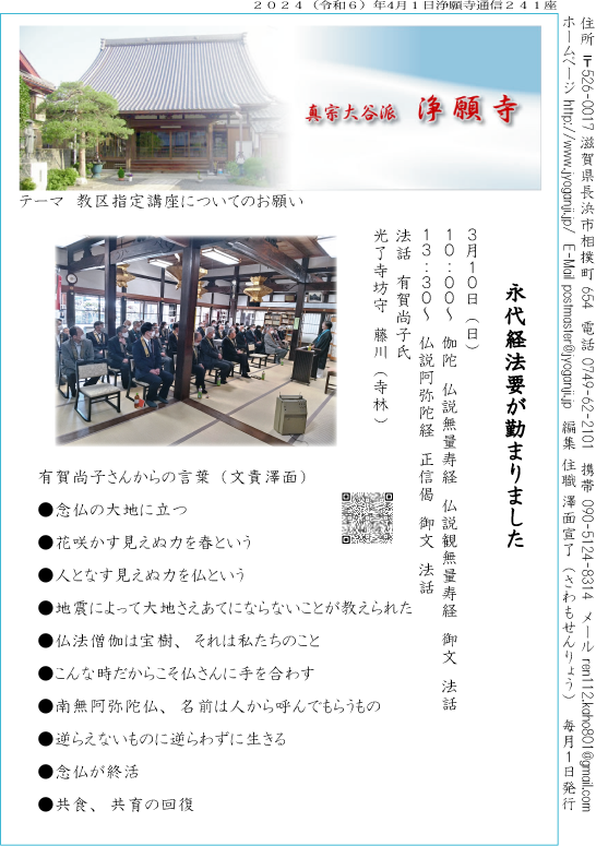 このたび東本願寺から能登半島地震救援金勧募依頼があり、