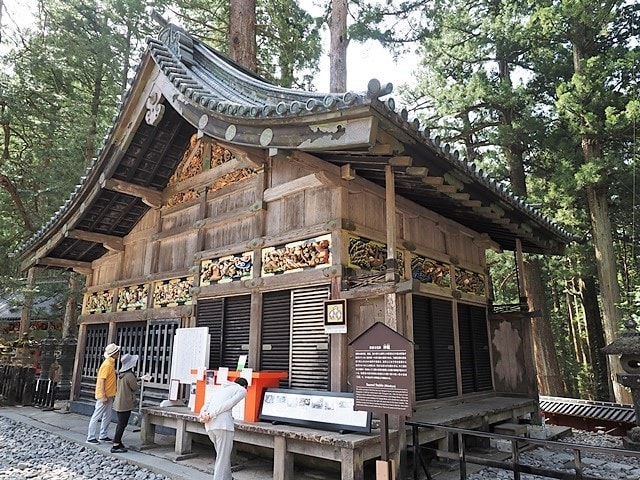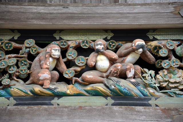 ■日光東照宮の神厩舎(しんきゅうしゃ)にある三猿。これは子ども猿がやがて母親猿になる過程が8面に渡って掘られています。