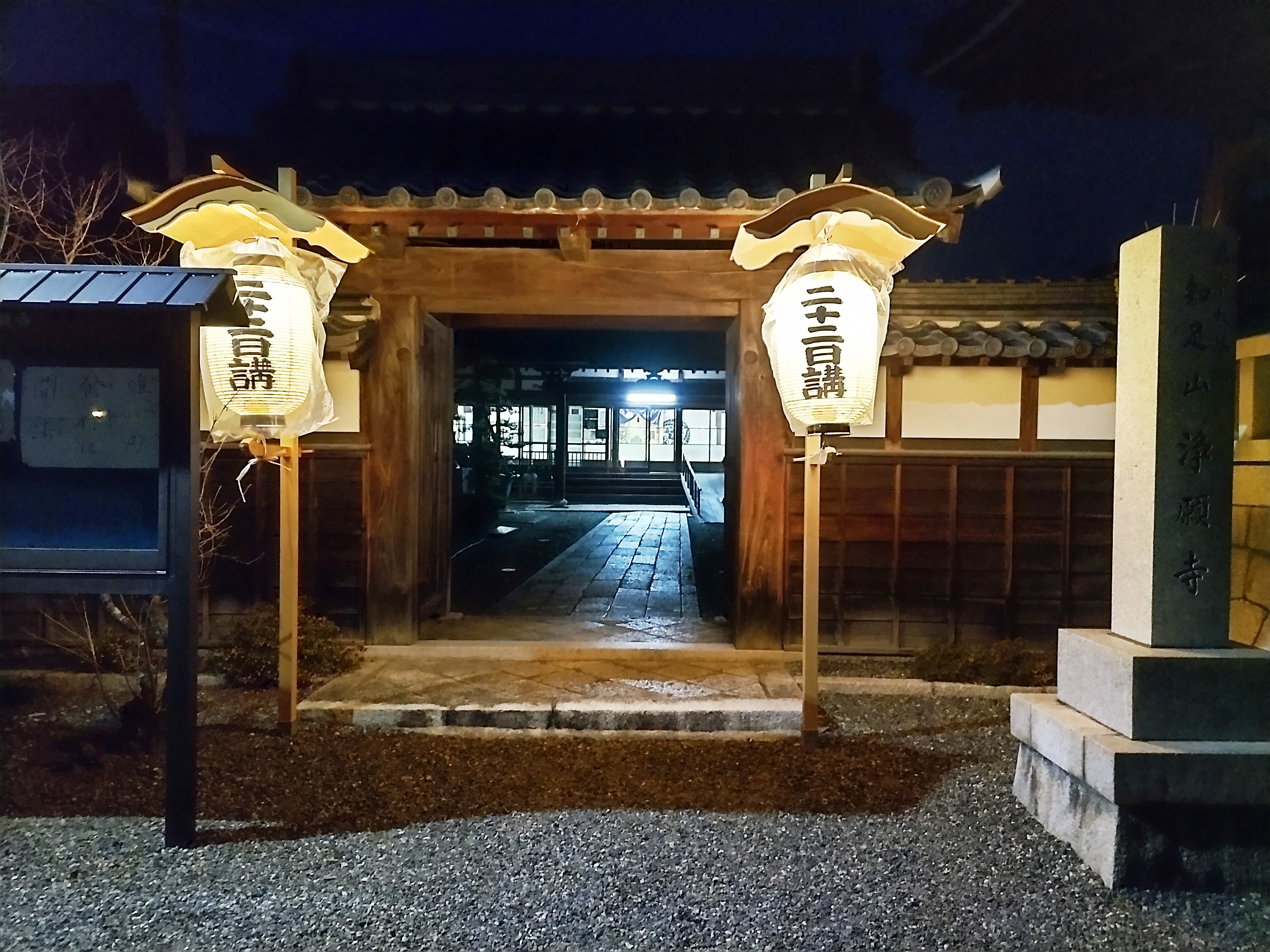 ↑お宿の浄願寺に提灯(夜)