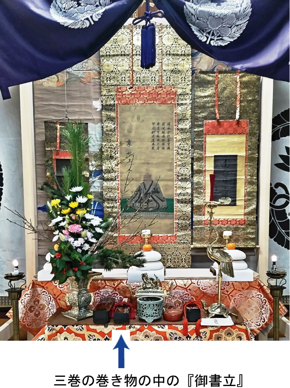 ↑右から、南無阿弥陀仏、乗如上人、教如上人の御影