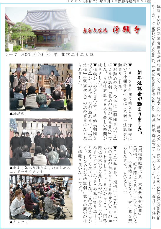1月22日13時〜勤行・御書拝読・法話2席