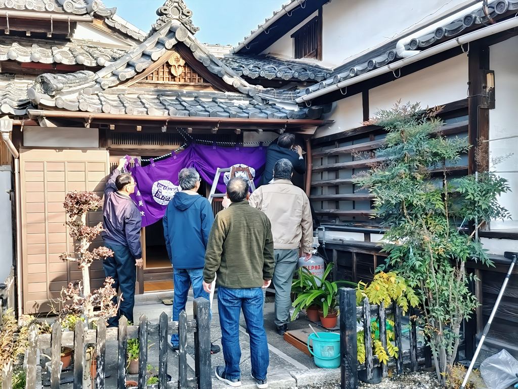 ↑11月14日(金)朝 玄関 幕張り