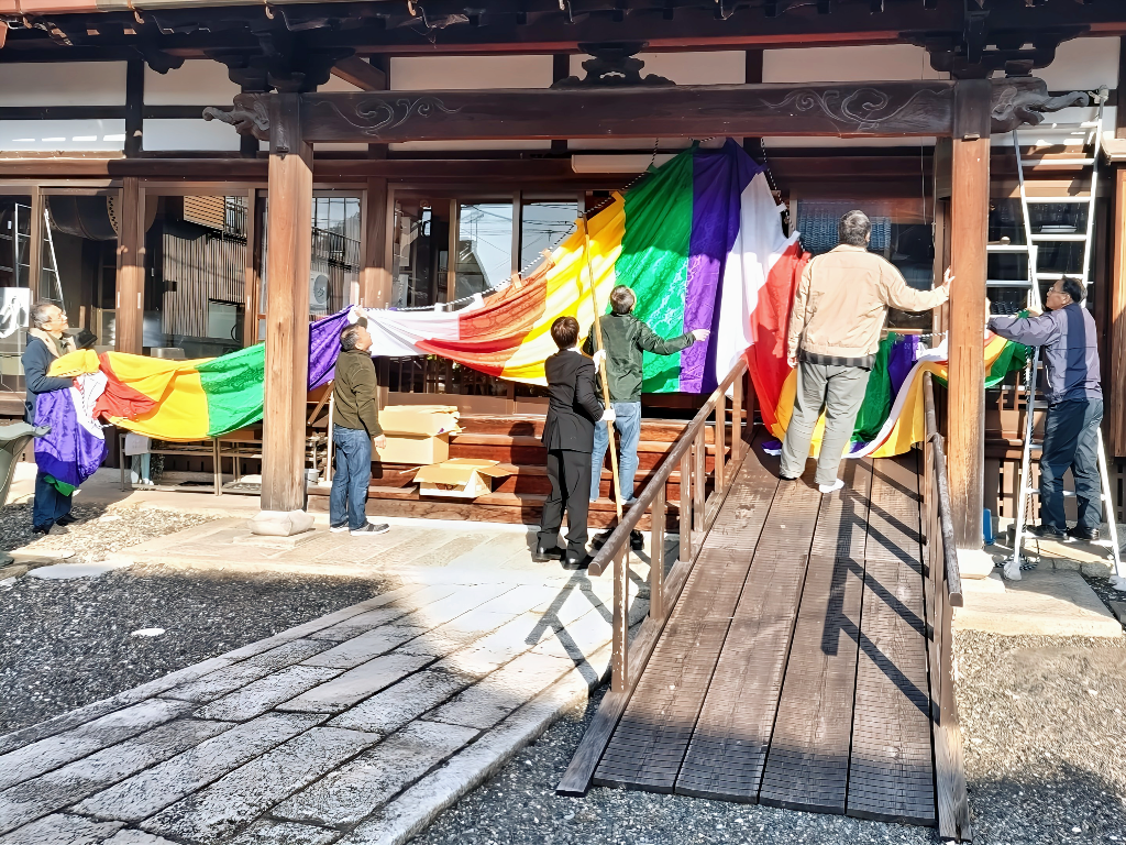 ↑11月14日(金)朝 山門 提灯設置 幕張り