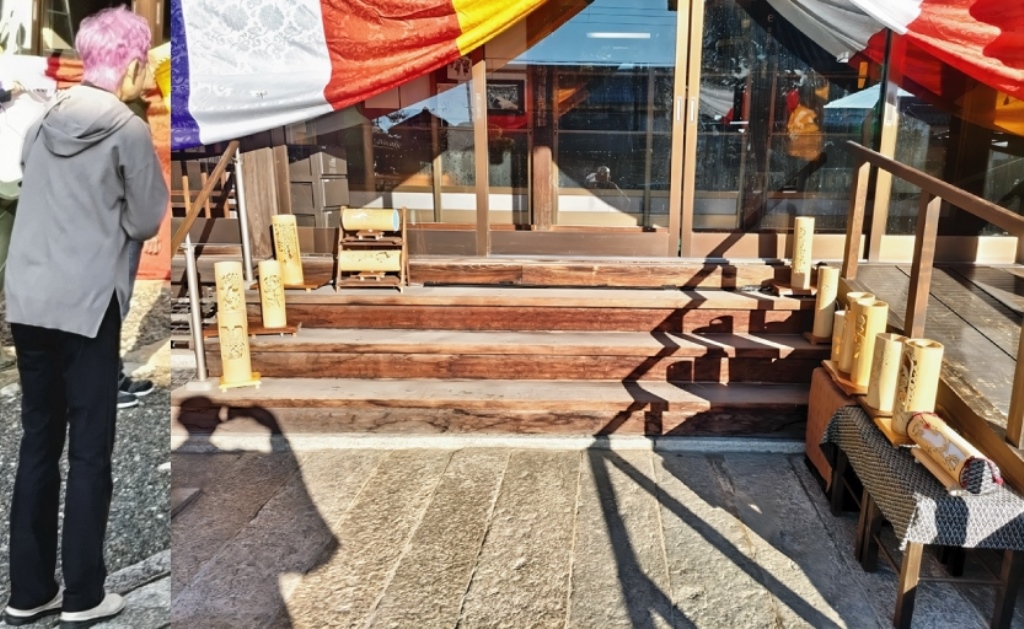 ↑11月14日(金)朝 竹灯籠設置(西村厚子さん)