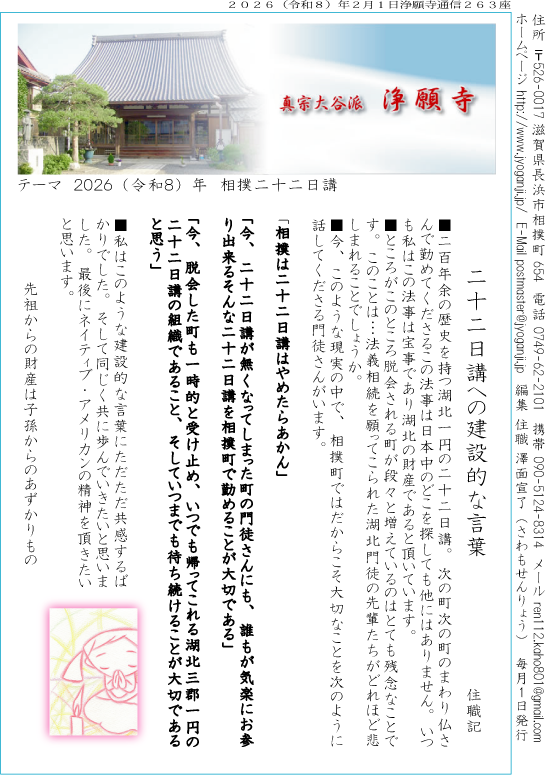 二十二日講への建設的な言葉 住職記
