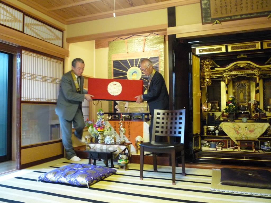 ↑地図17 長浜別院本堂にてお勤めの後、随行教導より法話です。(9:53撮影)