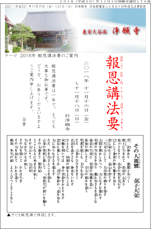 二〇一八年 十一月十六日(金)〜十一月十八日(日)於浄願寺