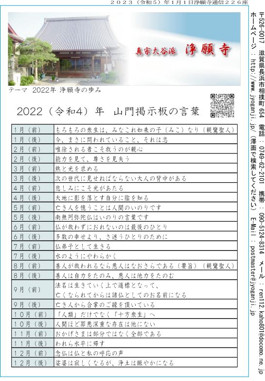 ▼浄願寺通信に対し、浄願寺門徒会様、松宮春子様、匿名様からお志を賜りました。誠にありがとうございました。