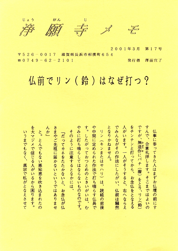 ●テーマ 仏前でリン(鈴)はなぜ打つ?(17号)