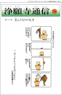 ▼小泉吉宏さんの描く、仏教の教えを通した鋭いマンガは浄願寺通信でも、何度も紹介させて頂きましたが、今号の表紙のマンガに、あらためて考えさせられています。