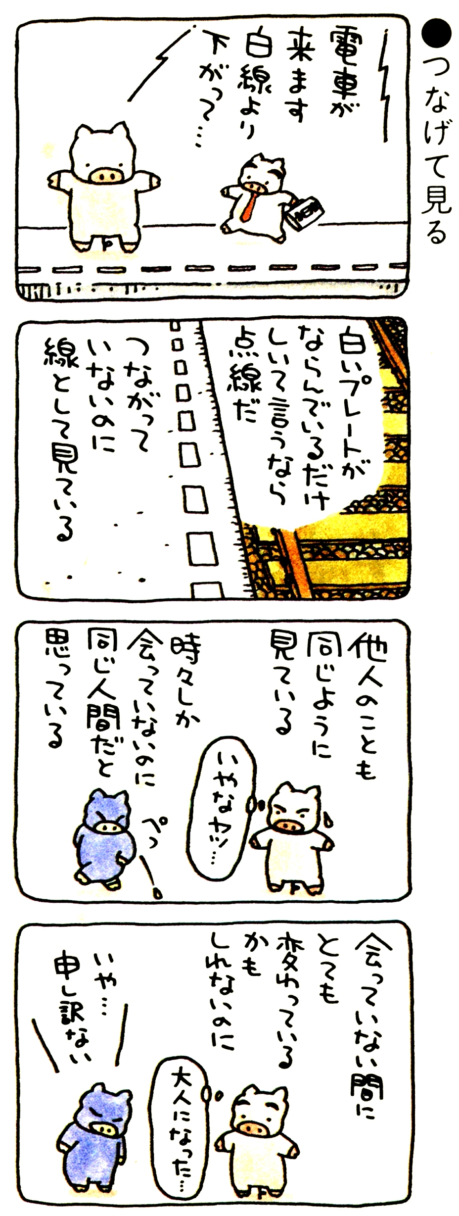 ◆この詩、表紙の漫画から教えられます。周りのことを四六時中、見つめることが不可能な私は、万事、私が見た世界しか知りません。にもかかわらずこの世界を絶対だと思い込んでいます。親鸞聖人は、そのことを「有漏の穢身」であると、人間は、常に漏れることが有るのだと和讃されています。