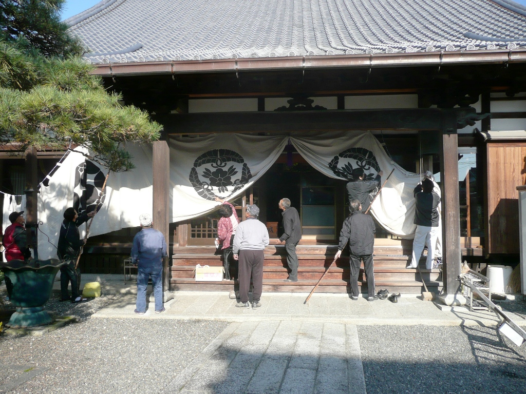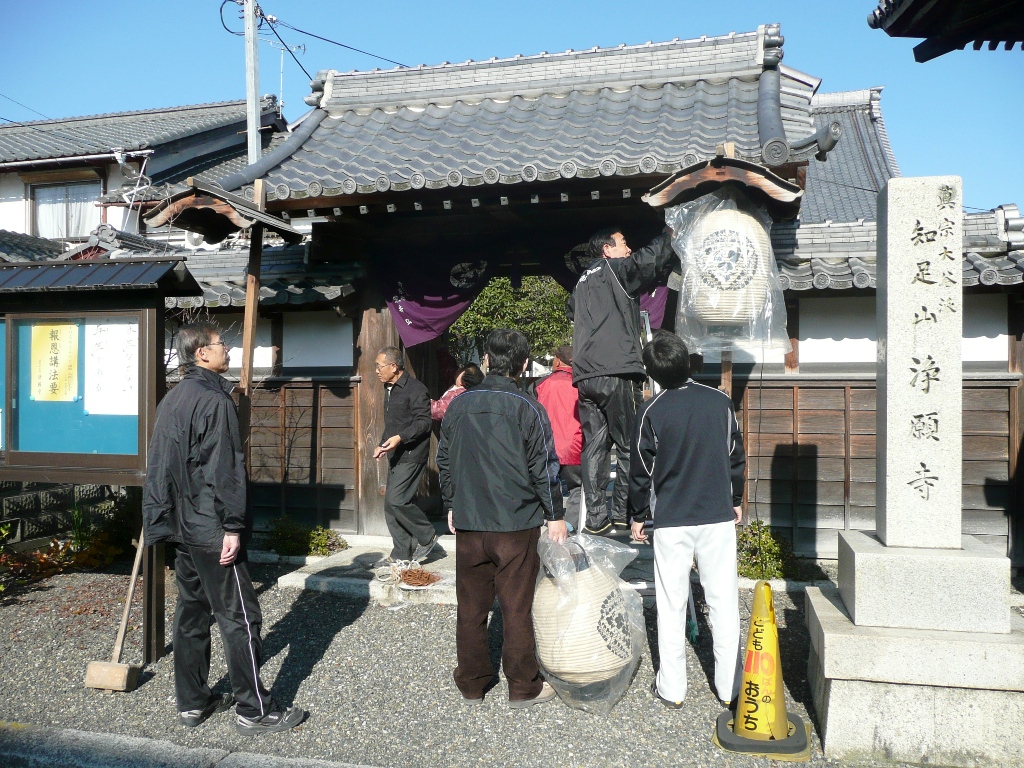 ↑11月30日(金)朝 山門 提灯設置 幕張り