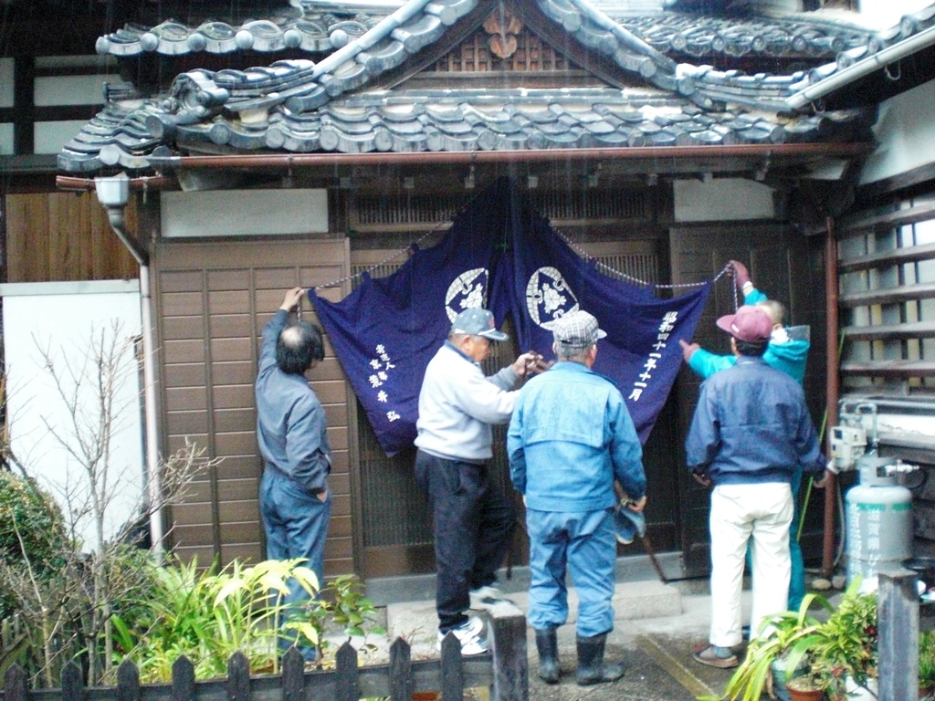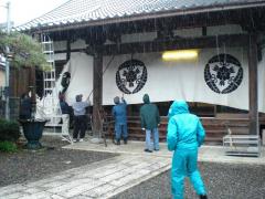 ↑12月5日(金)朝 山門 提灯設置 幕張り