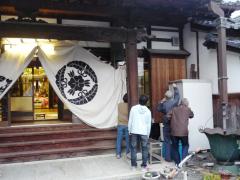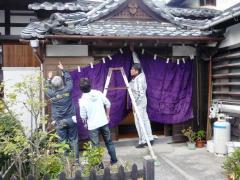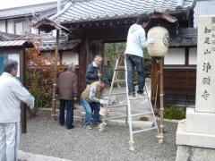 ↑11月5日(木)夕 山門 提灯設置 幕張り