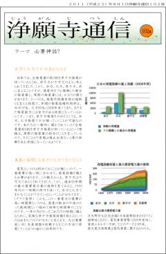 ▼あらためて、あるご門徒さんが言われた「放射線、安全と言うなら自分が食べてみよ」や「原発を建てるんやったら会長、社長の家に建てよ」を思い出しています。それにしても、いつの時代も被害を被るのは一般庶民なのです。▼そう言えばこんなことも教えていただきました。それは3月、4月にあった例の計画停電のことです。表紙のグラフや文章からもそれは明らかになってくるわけですが、あの計画停電の真の目的は、「どうだ、原発が無いと、こんなに困るだろう」とまたまた一般庶民を脅し、「必要神話」をいよいよ確固たるものにするための計画停電なのだと。