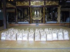 ■長浜教区から被災地への支援物資のお届けに対して、10月28日、浄願寺から集荷場所である組長の憶念寺様(小沢町)へ5キログラムの米袋50袋を届けさせていただきました。ご協力いただきましたご門徒さま、皆さま誠にありがとうございました。ここに写真を掲載しご報告させていただきます。この後、低温倉庫へ搬入、お米の仕分け、そして11月11日〜13日に東北へ搬送されます。