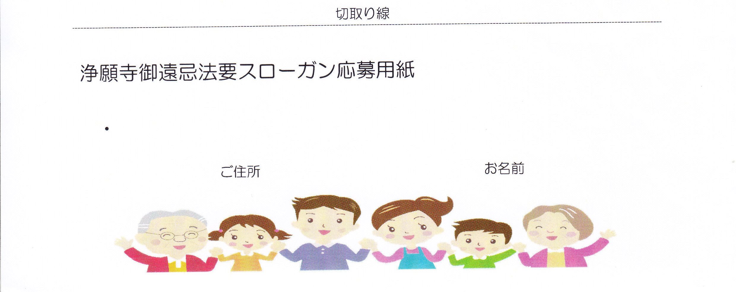 お待ち受け事業の一つとして、下記のとおり「御遠忌法要のスローガン」を募集させていただきます。多数のご応募いただきますようお願い申し上げます。