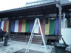 ↑11月20日(金)朝 本堂 向拝 幕張り