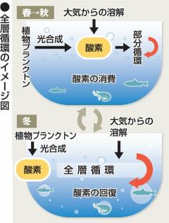 ▼この2〜3年特にこの2年間、ここらではほとんど雪が降りませんでしたが、それは琵琶湖にとっては生態系維持に不可欠な全層循環(琵琶湖の深呼吸)が出来なくなり(昨年はなんとか出来たそうですが)極めて危機的なことであると言われます。