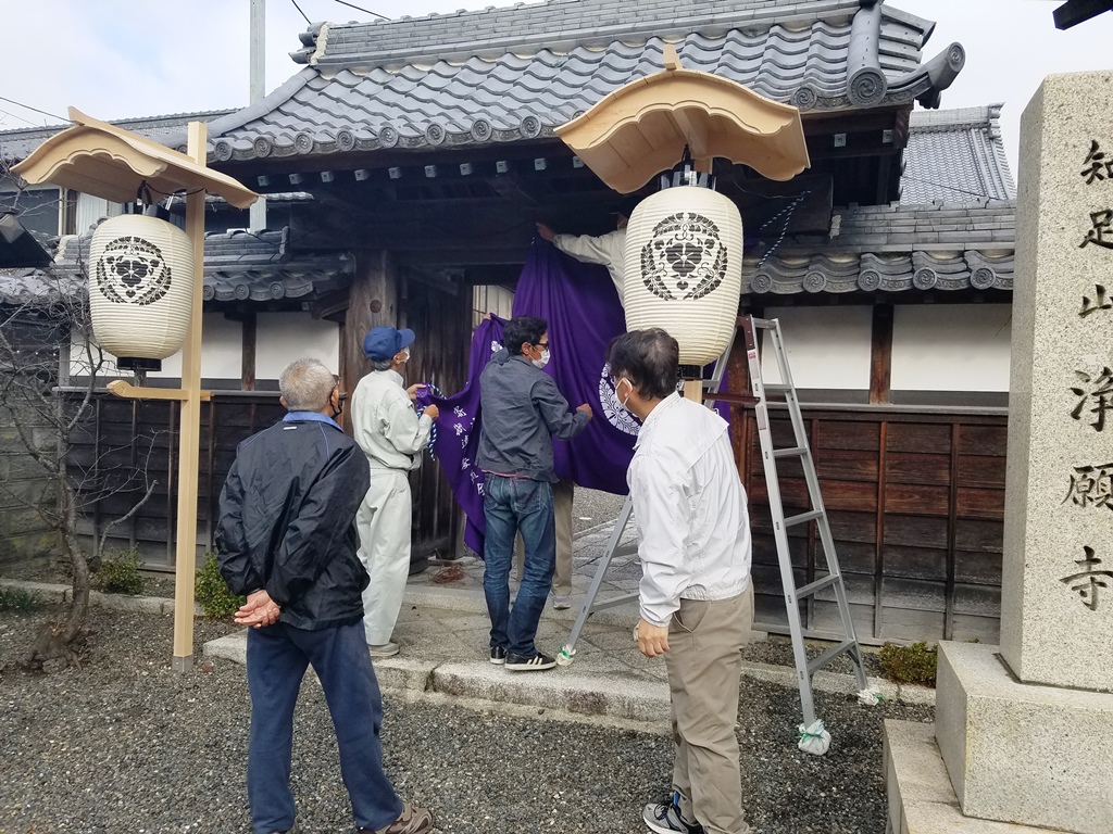 ↑11月18日(金)朝 山門 提灯設置 幕張り