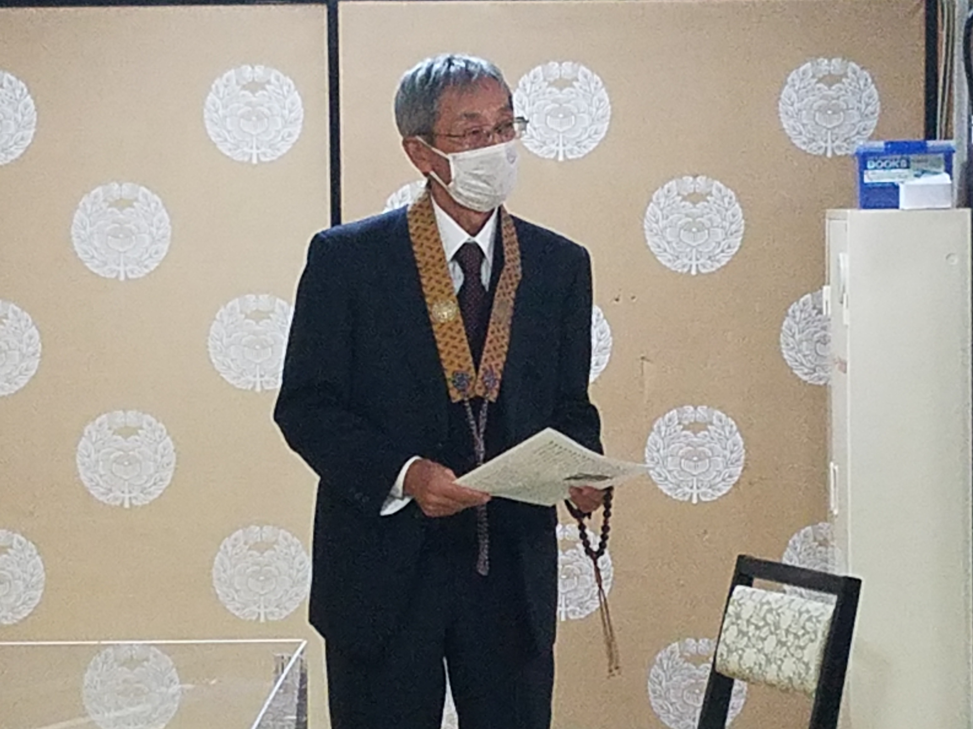 ↑お礼の言葉 藤田輿史雄氏(当寺 門徒総代長)