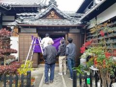 ↑11月18日(金)朝 玄関 向拝 幕張り