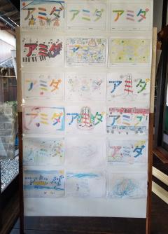 ※3 別紙の所定用紙に、色鉛筆、クレヨン ペンなど自由な発想で作品を完成させてください。長浜教務所から参加者全員にプレゼントがあります。前回の「デザインアミダ」の時と同じく、浄願寺本堂入口に貼らせて頂き(※右画像)、浄願寺通信、ホームページに掲載させて頂きます。詳しくは住職まで、ぜひ皆々様、お待ちしています。