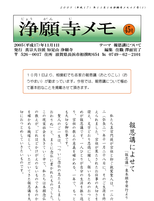 10月1日より、相撲町でも各家の報恩講(おとりこし)(おうやまい)が勤まっています。今号では、報恩講について極めて基本的なことを掲載させて頂きます。