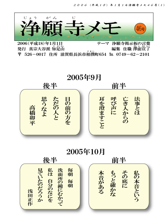 ●46号では、2005年9月〜12月までの浄願寺掲示板の言葉を掲載しました。