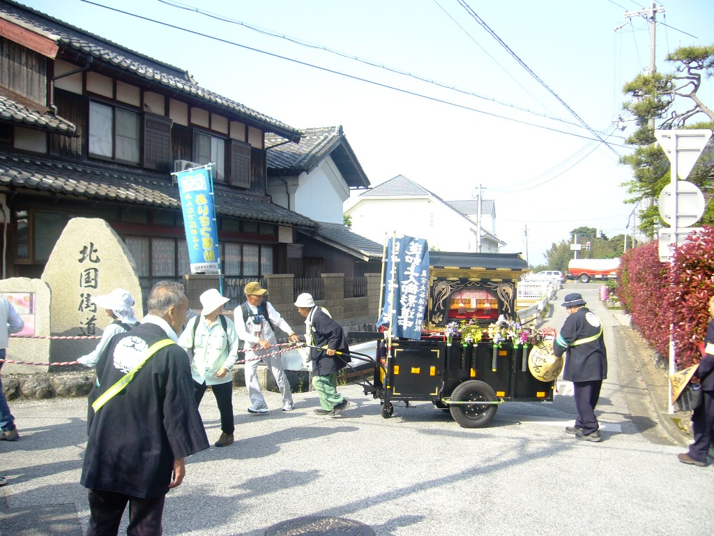 ↑蓮如上人御影(写真の赤色の箱の中)が納められ出発(9:47撮影)