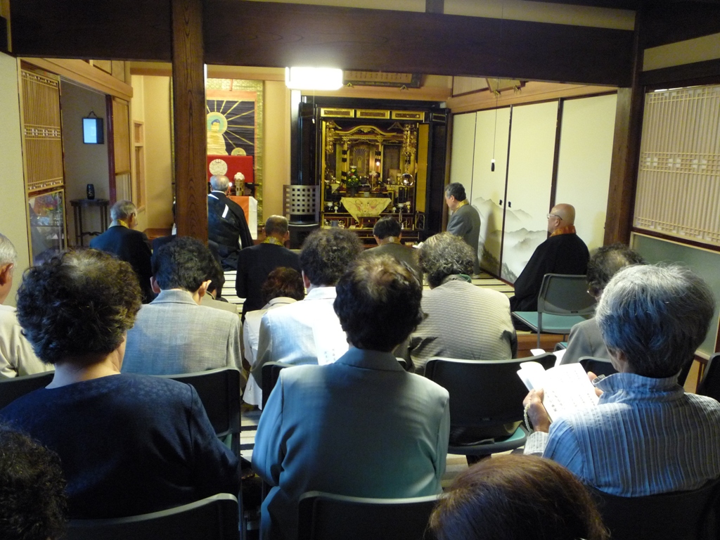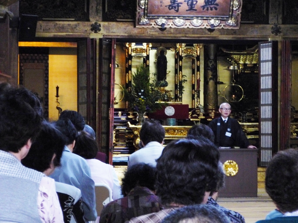 ↑地図17 長浜別院本堂にてお勤めの後、随行教導より法話です。(9:53撮影)