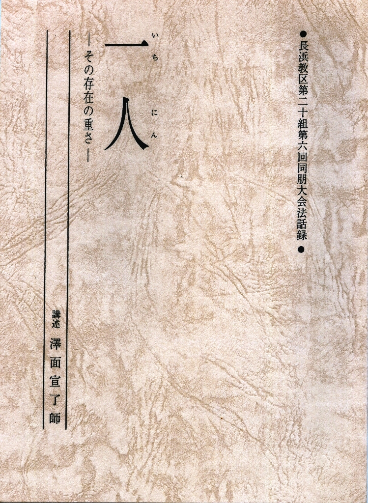 また、今まで二十組同朋の会を中心に、この活動にご尽力くださった、関係者に敬意と感謝を表するとともに、毎回講語録を発刊しつづけてくださる、勝木推進員と関係の皆さんに御礼をもうします。